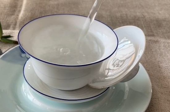 冲泡小青柑前需先用100℃的沸水对盖碗和茶杯进行烫洗,去除盖碗中的异味,以保证茶香的浓郁。烫杯后,需将开水倒掉。此外,在冲泡小青柑的过程中,水温也需控制在100℃以上,才能使香味更好的散发。