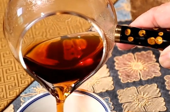普洱熟茶是将云南大叶种晒青茶经过摊凉、杀青、揉捻、晒干、湿水、渥堆等工序制成的,由于普洱熟茶经过发酵的缘故,其在冲泡之后具有色泽褐红,滋味纯和的特点,陈香独特。