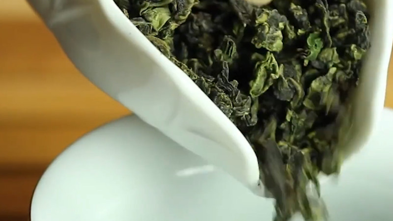 安溪铁观音茶条卷曲、肥壮圆结、沉重匀整、色泽砂绿,整体形状似蜻蜓头、螺旋体、青蛙腿,茶叶大部分向叶背卷曲,砂绿明显,具有“绿叶镶红边”之美感。