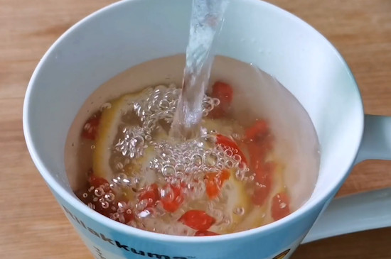 蒲公英花茶,把10~15g蒲公英茶洗净后投入玻璃壶中,加入清水煮开;柠檬茶,把1~2片鲜柠檬片投入玻璃杯中,注入60℃左右的水冲泡;枸杞茶,将10~15颗枸杞用清水洗净,投入玻璃杯中,注入不超过60℃的开水冲泡。