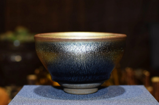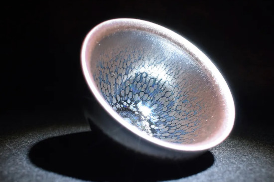 传统中的建盏外形古朴浑厚,色泽陈朴,视觉感受协调自然,并没有光鲜靓丽的感受,而化学釉的建盏外观光泽十分鲜亮,表面釉色浓重艳丽,初始目眩多彩,久视略显庸俗。
