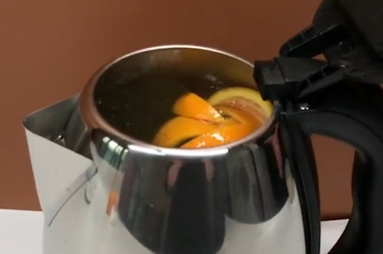 新水壶第一次可以用橘子皮清洗,先在新水壶中放入新鲜的橘子皮,再倒入自来水,放在底座上烧开,随后将橘子皮焖3~4小时,最后倒掉橘子皮水,并用自来水冲洗干净。