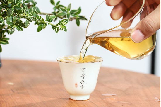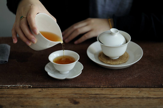 将泡好的茶水倒入杯中,使用茶夹将品茗杯分别夹于客人,不能直接用手拿着杯口递给客人,不仅不卫生而且也不礼貌,待将所有人拿到茶后,再行举杯品尝。