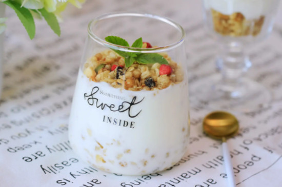 1、直接冲泡,将酸奶倒入玻璃杯中,取干吃谷物麦片投入玻璃杯中拌匀;2、添加葡萄干,将酸奶倒入玻璃杯中,投入葡萄干和干吃谷物麦片拌匀冷冻;3、添加巧克力,将酸奶倒入玻璃杯中,投入干吃谷物麦片,放入冰箱冻结实后浇巧克力。