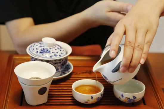 当和其他客人一起饮茶时,茶量的选择适中即可,不宜过浓或者过淡,需要明显的茶味便可以,如果客人提及喜欢的口味,再适当增加或减少,冲茶时姿态优雅,高低起伏三次,匀速冲泡。