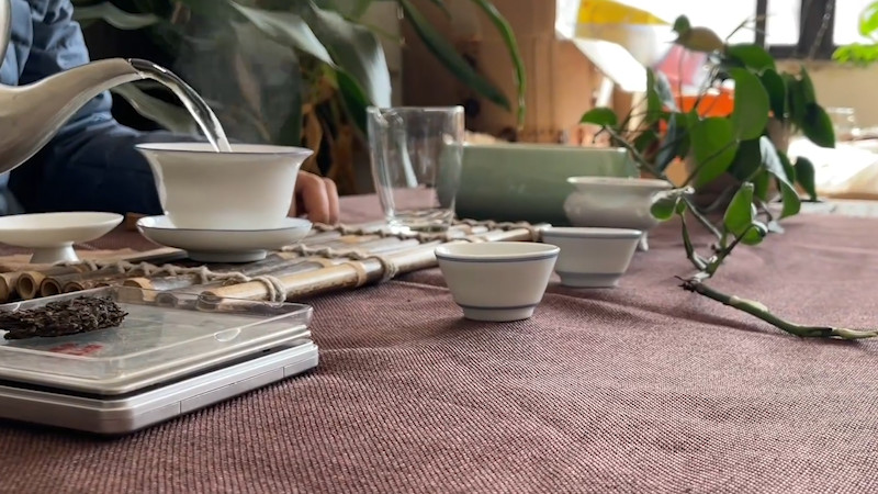 烫杯之后,取3-5克干茶投入杯中,如绿茶、白茶、红茶、黄茶这类茶,每次冲泡投茶量不超过5克,而乌龙茶、黑茶、普洱茶一般需要7-8克。新手可以用电子秤来取茶,而经验丰富的人可直接取茶。