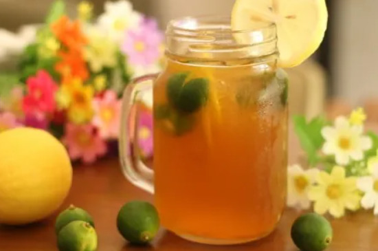 柠檬和小青柠切块放入准备好的干净容器中,再倒入煮好的水果茶,加入适量冰糖、蜂蜜调味。可按个人口味加入适量冰块,将果茶放入冰箱中冷藏一会儿口感会更佳,这样柠檬果茶就做好了。