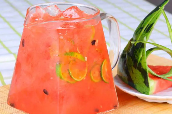 熬糖,冰糖熬制成糖浆放凉备用;泡茶,2包茉莉花茶用600克开水冲泡三分钟,放凉备用;备料,西瓜去皮切成小块分为两份;取汁,西瓜汁放冰箱冷藏;混合及装杯,用雪克杯将西瓜汁、茶汤、糖浆混合混匀,倒入杯中,最后加入西瓜丁。