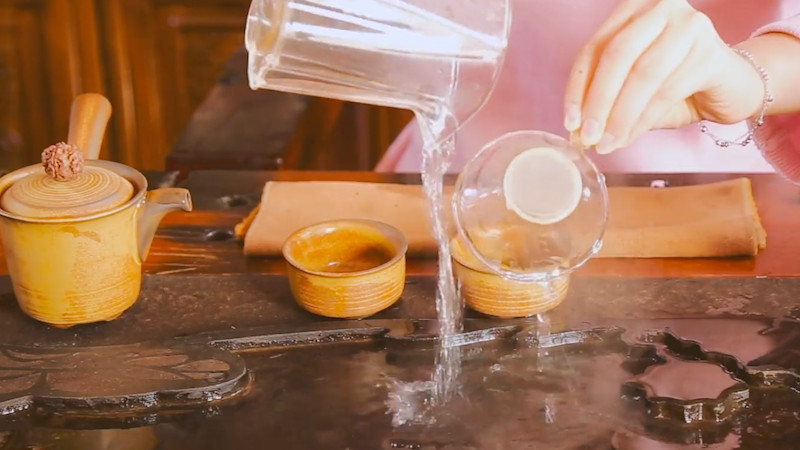 往盛有柠檬、百香果、金桔的杯中加入冰糖、冰块,可以根据自己的口味加入些许蜂蜜,增加风味。茶汤和白开水以1:1的比例倒入杯中,用筷子搅拌均匀,充分浸泡即可饮用。