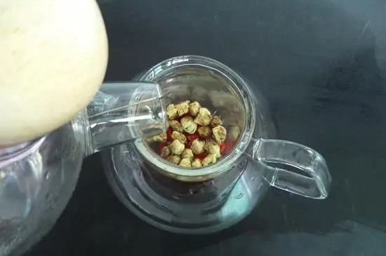 准备一个玻璃杯,先用沸水将玻璃杯冲洗一遍,使茶具受热均匀,更好的激发茶香,还能起到消毒去异味的作用。将菊花茶放入杯中,倒入少量热水洗茶,泡3`5秒迅速将水倒掉。