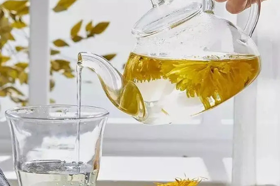 菊花茶较为细嫩,冲泡的水温不宜过高,一般用80~90℃左右的水。冲泡时准备一个玻璃杯,先用沸水将玻璃杯冲洗一遍,将菊花茶放入杯中,倒入少量热水洗茶,采用高冲的手法将80℃开水倒入杯中,放置5分钟即可出汤饮用。