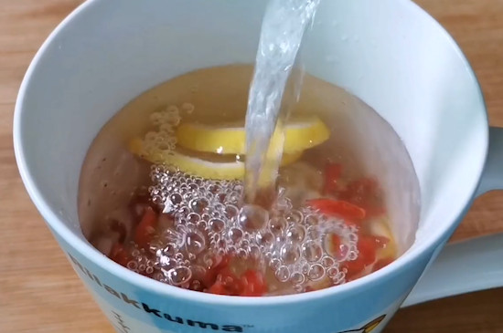 之后需将洗净的柠檬片放入杯中,倒入开水中进行冲泡,水温需控制在90℃左右,水温过高会导致柠檬中的养分大量流失。一般闷泡5分钟左右,进行过滤后便可饮用。