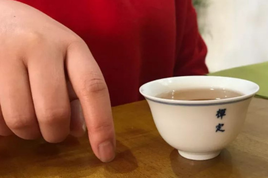 如果是朋友、平辈之间相互敬茶,只需要将食指或者中指并拢,敲击桌面三下,以表示尊重之意即可,相当于双手抱拳作揖。而晚辈请长辈喝茶,长辈用食指或者中指敲击桌面一下即可,相当于点头示意。