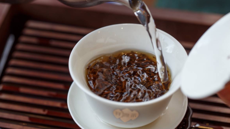 冲泡曼松古树茶,建议选择甘甜清冽的山泉水,或者是纯净水、矿泉水,往盖碗中投茶七八克左右,注入95度以上热水后,茶水比1:20-30,浸泡五秒左右便可饮用。