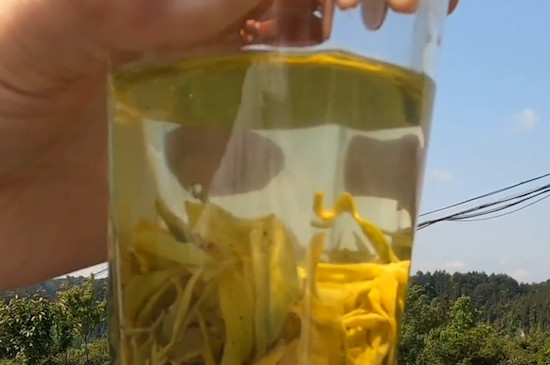 黄茶属于轻发酵茶,是将鲜叶经杀青、揉捻、闷黄、干燥等工序制成,让鲜叶在制作时经干热或湿热作用,形成了黄叶黄汤的特点。