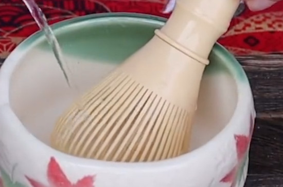 茶筅使用方法比较简单,点茶师用茶勺将粉末茶盛入建盏,然后冲入沸水,用茶筅快速击拂,使之产生沫浡。泡沫浮于汤面,以茶汤颜色鲜白、茶沫停留保持时间长作为茶技高超的标准。