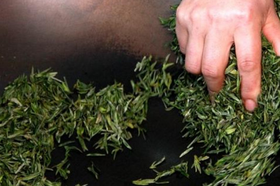 在茶叶炒制的过程中要边炒边进行揉搓。炒茶的时间很长,一般要1至2个小时,将茶叶炒成深褐色、茶叶卷曲即可。