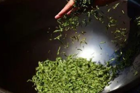 首先把茶叶的杂质、碎屑和小虫子清洗干净之后,晾干水分。再洗干净铁锅,将沥干水分的茶叶倒进锅中,最好用大锅小火炒茶,因为茶叶受热会更为均衡,小火也能保证茶叶炒制过程中温度不会过高导致茶叶变糊。