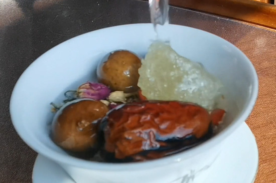 八宝茶材料一般有茶叶、红枣、枸杞、核桃仁、桂圆、芝麻、葡萄干、菊花等配料,八宝茶是没有固定配料的,八宝茶一般使用盖碗冲泡,冲泡需要滚开的沸水,各种配料在不同时间段释放出其独特的滋味,八宝茶喝起来香甜可口,滋味独具。